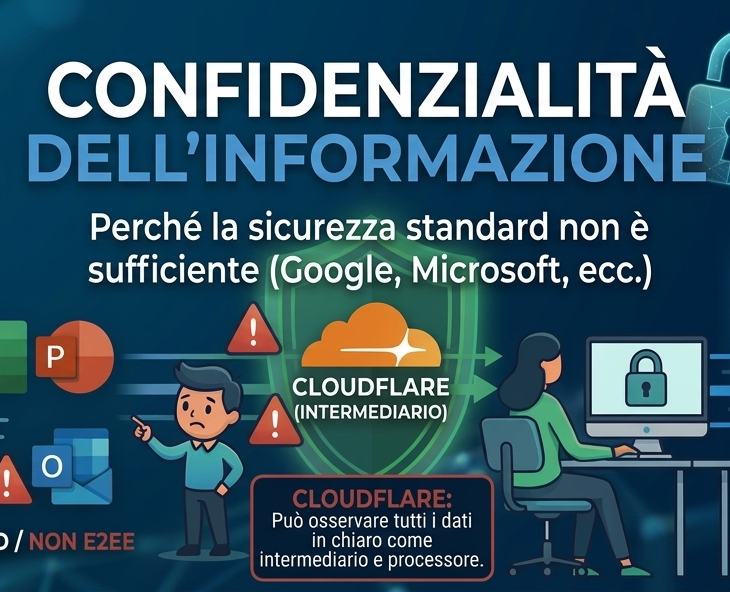 Le misure di sicurezza standard offerte dai maggiori fornitori di servizi online come Google, Microsoft e Cloudflare proteggono i tuoi dati da accessi esterni, ma i fornitori stessi possono comunque visualizzarli in chiaro. Una vera riservatezza richiede un approccio diverso.